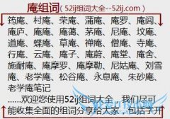 组词大全详解[庵组词]如:筠庵、村庵、荣庵、蒲庵、庵罗、庵闾、庵庐、庵庵、庵蔼、茅庵、尼庵、坟庵、道庵、蝶庵、草庵、禅庵、僧庵、寺庵、行庵、云庵、庵子、庵蔚...