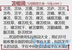 组词大全详解[苫组词]如:苫茨、苫块、苫蓑、苫席、苫庐、苫次、苫布、苫宇、苫盖、席苫、苫褐、茅苫、廉苫、草苫、在苫、寝苫、铺眉苫眼、寝苫枕草、寝苫枕戈、寝苫...