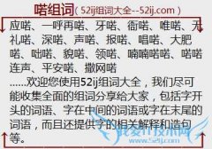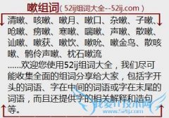 组词大全详解[嗽组词]如:清嗽、咳嗽、嗽月、嗽口、杂嗽、子嗽、呛嗽、痨嗽、寒嗽、喘嗽、声嗽、散嗽、讪嗽、嗽获、嗽饮、嗽吮、嗽金鸟、散咳嗽、鹘伶声嗽、枕石嗽流...