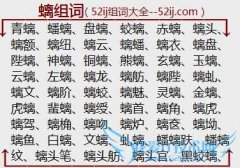 组词大全详解[螭组词]如:青螭、蟠螭、盘螭、蛟螭、赤螭、螭头、螭额、螭纽、螭云、螭蟠、螭衣、螭盘、陛螭、神螭、铜螭、熊螭、玄螭、玉螭、云螭、左螭、螭龙、螭舫...
