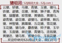 组词大全详解[骢组词]如:云骢、骄骢、乌骢、青骢、玉骢、骢马、铁骢、避骢、花骢、乘骢、狮子骢、青海骢、凝露骢、皎雪骢、黄骢曲、黄骢马、避青骢、避花骢、避骢马...