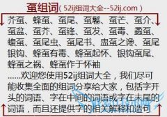 组词大全详解[虿组词]如:芥虿、蜂虿、虿尾、虿鬈、虿芒、虿介、虿盆、虿芥、虿锋、虿发、虿毒、蟊虿、蝮虿、虿尾虫、虿尾书、盅虿之谗、虿尾银钩、蜂虿有毒、蜂虿起...