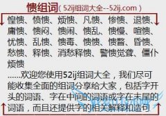 组词大全详解[愦组词]如:惶愦、愤愦、烦愦、凡愦、惨愦、退愦、庸愦、愦闷、愦闹、愦乱、愦慢、喧愦、忧愦、乱愦、愦毒、愦愦、愦瞀、昏愦、愁愦、释愦、消愁释愦、...