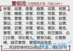 组词大全详解[詈组词]如:秽詈、诟詈、毒詈、颠詈、诋詈、刺詈、丑詈、嘲詈、谤詈、怨詈、骂詈、詈语、詈侮、詈訾、詈诅、辱詈、殴詈、欧詈、詈诘、忿詈、斗詈、叱詈...