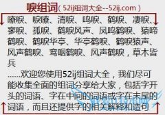 组词大全详解[呖组词]如:呖呖、淅呖、嘹呖、啭呖呖、噼呖啪啦、咿呖呜剌 另外还讲解呖的组词、拼音、繁体字、解释相关资料及发散思维组词等。...
