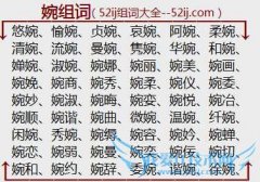 组词大全详解[婉组词]如:悠婉、愉婉、贞婉、哀婉、阿婉、柔婉、清婉、流婉、曼婉、隽婉、华婉、和婉、婵婉、淑婉、婉娜、婉丽、婉美、婉画、婉娩、婉商、婉秀、婉柔...
