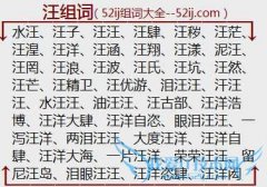 组词大全详解[汪组词]如:水汪、汪子、汪汪、汪肆、汪秽、汪茫、汪湟、汪洋、汪涵、汪翔、汪漾、泥汪、汪罔、汪浪、汪波、汪氏、汪坑、汪然、汪芒、汪精卫、汪优游、...