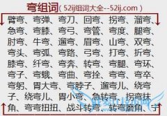 组词大全详解[弯组词]如:臂弯、弯弹、弯刀、回弯、拐弯、溜弯、急弯、弯膝、弯弓、弯管、弯度、腿弯、肘弯、牛弯、遛弯、眉弯、山弯、双弯、弯头、弯弧、弯路、弓弯...