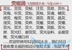 组词大全详解[荧组词]如:荧乱、荧荧、荧郁、注荧、荧然、荧听、荧侮、听荧、荧灿、荧烛、荧魂、精荧、惑荧、煌荧、荧华、清荧、青荧、晶荧、滢荧、荧煌、荧晔、荧耀...