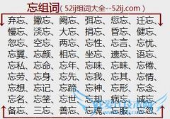 组词大全详解[忘组词]如:弃忘、撇忘、阙忘、弭忘、愆忘、迁忘、慢忘、淡忘、大忘、捐忘、昏忘、健忘、忽忘、空忘、两忘、忘性、忘言、忘忧、忘翼、忘颜、相忘、坐忘...