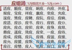 组词大全详解[应组词]如:适应、顺应、显应、响应、向应、外应、报应、宝应、祥应、禀应、变应、充应、逞应、策应、应聘、应阮、应役、应响、应适、应诊、应书、应行...