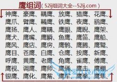 组词大全详解[鹰组词]如:神鹰、豪鹰、鞲鹰、放鹰、猎鹰、花鹰、鹰爪、臂鹰、鞴鹰、铁鹰、夜鹰、鹞鹰、鹰扬、鹰人、鹰鞲、鹰眼、鹰睨、鹰架、鹰犬、鹰嘴、鹰瞬、鱼鹰...