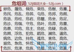 组词大全详解[危组词]如:卵危、履危、倾危、乘危、危榭、危蹇、危民、危乱、危弱、屯危、危邦、危阁、危语、危柱、危岩、危辙、危坐、危足、危诊、危惴、守危、危叶...