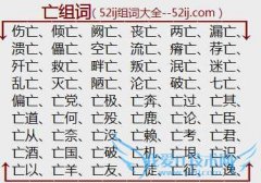 组词大全详解[亡组词]如:伤亡、倾亡、阙亡、丧亡、两亡、漏亡、溃亡、儡亡、空亡、流亡、瘠亡、荐亡、歼亡、救亡、畔亡、叛亡、泯亡、迷亡、乱亡、灭亡、陋亡、沦亡...