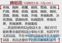 组词大全详解[痈组词]如:养痈、痈肿、痈囊、痈病、赘痈、徙痈、朽痈、悬痈、疽痈、疵痈、痈疽、痈疮、溃痈、肠痈、吮痈、外痈、养痈贻患、决疣溃痈、舐痈吮痔、吮痈...