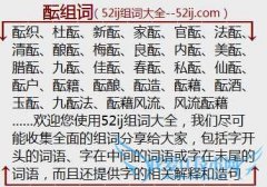 组词大全详解[酝组词]如:酝织、杜酝、新酝、家酝、官酝、法酝、清酝、酿酝、梅酝、良酝、内酝、美酝、腊酝、九酝、佳酝、春酝、私酝、仙酝、酝户、酝籍、酝酿、酝造...