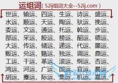 组词大全详解[运组词]如:世运、输运、四运、生运、诗运、盛运、水运、顺运、天运、陶运、驮运、挽运、委运、文运、通运、托运、斡运、步运、部运、采运、般运、榜运...