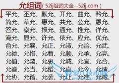 组词大全详解[允组词]如:平允、丕允、默允、开允、曲允、矜允、简允、荤允、惠允、共允、公允、恩允、答允、察允、报允、通允、推允、详允、淹允、显允、许允、依允...