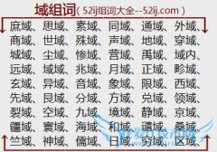 组词大全详解[域组词]如:庶域、思域、素域、同域、通域、外域、商域、世域、殊域、声域、地域、穿域、城域、尘域、惨域、营域、禹域、域内、远域、域域、兆域、月域...