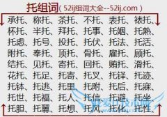 组词大全详解[托组词]如:承托、称托、茶托、不托、表托、裱托、杯托、半托、拜托、托事、托姻、托熟、托虑、托号、投托、托伏、托法、托活、附托、奉托、顶托、骨托...