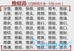 组词大全详解[推组词]如:牙推、重推、挨推、援推、推考、推移、五推、推尽、推头、推想、推销、推敬、推诿、推许、推盘、推收、推敌、推演、推免、推致、推显、推行...