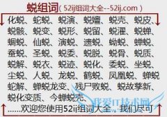组词大全详解[蜕组词]如:化蜕、蛇蜕、蜕演、蜕嬗、蜕壳、蜕皮、蜕骸、蜕变、蜕形、蜕留、蜕濯、蜕蝉、蜩蜕、仙蜕、演蜕、遗蜕、蚴蜕、蝉蜕、蚕蜕、圣蜕、蜕委、蜕脱...