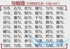 组词大全详解[与组词]如:与夺、右与、优与、增与、与与、与知、与会、易与、相与、裁与、溶与、所与、过与、寡与、给与、干与、敷与、施与、侵与、同与、徒与、推与...