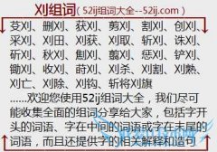 组词大全详解[刈组词]如:芟刈、删刈、获刈、剪刈、割刈、创刈、采刈、刈田、刈获、刈取、斩刈、诛刈、斫刈、秋刈、劁刈、翦刈、惩刈、铲刈、锄刈、收刈、莳刈、刈杀...