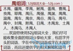 组词大全详解[禺组词]如:木禺、疆禺、季禺、鲋禺、番禺、曹禺、贲禺、耶禺、禺氏、禺强、禺渊、禺禺、温禺、禺车、禺京、禺谷、禺马、禺号、禺中、封禺、附禺、日禺...