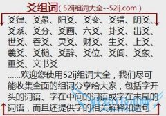 组词大全详解[爻组词]如:爻律、爻彖、阳爻、爻变、爻错、阴爻、爻系、爻分、爻画、六爻、卦爻、出爻、世爻、吞爻、灵爻、财爻、生爻、上爻、羲爻、爻槌、爻辞、爻位...