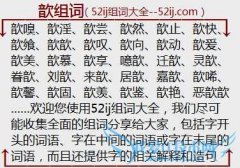 组词大全详解[歆组词]如:歆嗅、歆淫、歆尝、歆然、歆止、歆快、歆飨、歆歆、歆叹、歆向、歆动、歆爱、歆美、歆慕、歆享、噫歆、迁歆、灵歆、眷歆、刘歆、来歆、居歆...