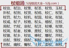 组词大全详解[杖组词]如:杖信、杖治、杖策、杖圣、杖筇、玉杖、折杖、杖刑、杖贤、杖疮、杖仁、杖架、杖罚、杖力、杖机、杖国、杖化、杖鼓、杖咸、杖子、杖格、杖头...