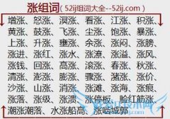 组词大全详解[涨组词]如:增涨、怒涨、溟涨、看涨、江涨、积涨、黄涨、鼓涨、飞涨、尘涨、饱涨、暴涨、上涨、升涨、壅涨、余涨、涨闷、涨膀、涨进、涨红、涨水、涨潦...