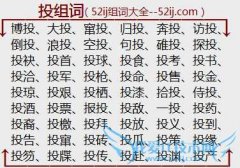 组词大全详解[投组词]如:博投、大投、窜投、归投、奔投、访投、倒投、浪投、空投、句投、碓投、探投、投袂、投首、投球、投食、投考、投书、投洽、投军、投枪、投命...