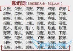 组词大全详解[账组词]如:入账、欠账、清账、齐账、劈账、赔账、跑账、漂账、盘账、放账、趸账、宕账、躲账、打账、呆账、出账、查账、缠账、报账、煞账、上账、贳账...