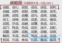 组词大全详解[战组词]如:战眩、战心、战驳、战役、战征、战灼、战械、战阵、战狱、战情、战祷、战军、战袍、战惊、战棚、战马、战局、战兢、战士、战棹、战扇、战表...