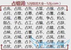 组词大全详解[占组词]如:占兆、占用、占先、占筮、占强、占步、占月、占察、占募、占破、占覆、占奏、占视、占着、占哔、占有、争占、灼占、指占、子占、占工、占骗...