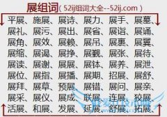组词大全详解[展组词]如:平展、施展、展诗、展力、展手、展墓、展礼、展污、展出、展省、展诣、展诵、展角、展效、展赖、展吊、展裹、展翼、展缩、展谒、展挣、展觐...