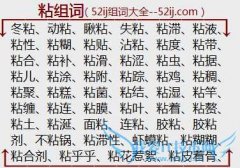 组词大全详解[粘组词]如:冬粘、动粘、瞅粘、失粘、粘滞、粘液、粘性、粘糊、粘贴、沾粘、粘度、粘带、粘合、粘补、粘滑、粘涩、粘虫、粘据、粘儿、粘涂、粘附、粘踪...