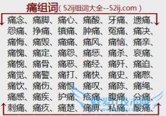 组词大全详解[痛组词]如:痛念、痛脚、痛心、痛酸、牙痛、遗痛、怨痛、挣痛、镇痛、肿痛、冤痛、痛决、痛悔、痛毁、痛痛、痛风、痛恼、痛亲、痛愧、痛定、痛怨、痛惩...