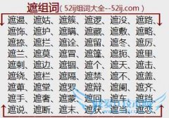 组词大全详解[遮组词]如:遮遏、遮姑、遮簇、遮逻、遮没、遮路、遮饰、遮护、遮瞒、遮藏、遮敷、遮略、遮捺、遮拦、遮诠、遮留、遮冬、遮厉、遮兰、遮莫、遮冒、遮篷...