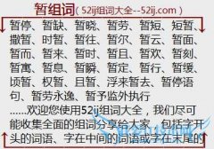 组词大全详解[暂组词]如:暂停、暂缺、暂晓、暂劳、暂短、短暂、撒暂、时暂、暂往、暂尔、暂云、暂面、暂而、暂来、暂时、暂且、暂欢、暂刻、暂寓、暂息、暂瞬、暂定...