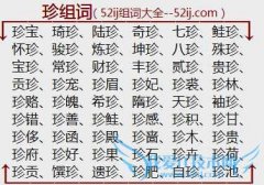 组词大全详解[珍组词]如:珍宝、琦珍、陆珍、奇珍、七珍、鲑珍、怀珍、骏珍、炼珍、坤珍、八珍、殊珍、宝珍、常珍、财珍、丰珍、贰珍、贵珍、贡珍、珍宠、珍眉、珍妃...