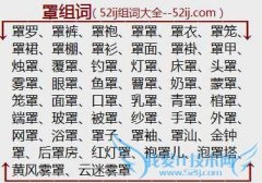 组词大全详解[罩组词]如:罩罗、罩裤、罩袍、罩罩、罩衣、罩笼、罩裙、罩棚、罩衫、罩面、罩褂、罩甲、烛罩、覆罩、钓罩、灯罩、床罩、头罩、雾罩、眼罩、鱼罩、罾罩...