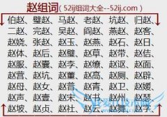 组词大全详解[赵组词]如:伯赵、璧赵、马赵、老赵、坑赵、归赵、二赵、完赵、吴赵、阎赵、燕赵、赵客、赵娆、张赵、赵玉、赵燕、赵石、赵日、赵体、赵后、赵璧、赵草...