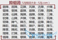 组词大全详解[障组词]如:徼障、画障、花障、风障、迭障、步障、臂障、壁障、蔽障、碧障、百障、图障、庭障、仙障、掩障、幽障、保障、三障、软障、山障、声障、守障...