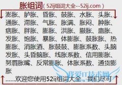 组词大全详解[胀组词]如:澎胀、胪胀、昏胀、鼓胀、水胀、头胀、通胀、滞胀、气胀、胀满、胀闷、肿胀、痞胀、胖胀、膨胀、洪胀、臌胀、蛊胀、发胀、饱胀、暴胀、体膨...