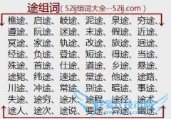 组词大全详解[途组词]如:樵途、启途、岐途、泥途、泉途、穷途、遵途、阮途、迷途、末途、假途、近途、冥途、家途、轨途、改途、旅途、迥途、经途、负途、登途、短途...