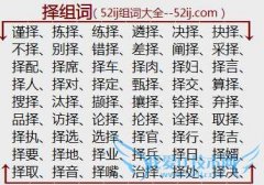 组词大全详解[择组词]如:谨择、拣择、练择、遴择、决择、抉择、不择、别择、错择、差择、阐择、采择、择配、择席、择车、择肉、择妇、择言、择人、择对、择定、甄择...
