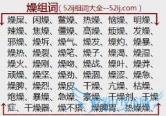 组词大全详解[燥组词]如:燥屎、闲燥、鳖燥、热燥、恼燥、明燥、辣燥、焦燥、僵燥、高燥、烦燥、发燥、邪燥、燥坼、燥气、燥发、燥灼、燥暴、燥热、燥裂、燥笔、燥子...